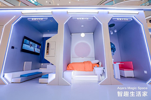 此次Aqara快闪店围绕“智趣生活家”主题打造,现场策划了客厅、卧室、餐厅、书房、衣帽间秒变五大奇妙互动智能场景,让线下消费者们进入快闪店后即可体验到因全屋智能带来的更美好的生活。比如,早晨起床,一键开启起床模式——灯光亮起,窗帘打开,开启美妙的晨间时光;出门上班,一键全关,联动关闭空调、全家灯光以及客厅风扇;周末在家想看场电影,一键开启影院模式——灯光暗下,窗帘关闭,开始享受美妙时光。