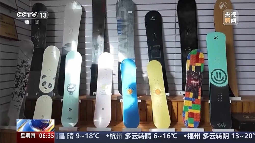 某冰雪装备生产企业负责人 靳惠媛:2002年的时候,我正好是做外贸生意,赶上一个冬博会,走到一个展位上,全是板子。那时候没见过这样的滑雪板。他说刚刚进入中国,在国外特别流行了,就进货了10块单板。